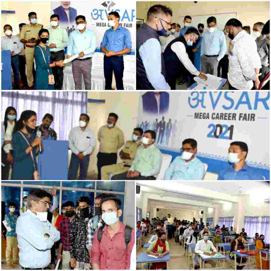 *B B C टाइम्स इन* रतलाम 12 अगस्त 2021/ जिला प्रशासन द्वारा आयोजित मेगा जॉब फेयर ‘अवसर’ युवाओं के लिए भविष्य का नया अवसर लेकर उपस्थित हुआ। यहां रतलाम ही नहीं आसपास के कई जिलों से उपस्थित युवाओं को रोजगार कंपनियों ने मौके पर ही चयनित किया और उन्हें नौकरी के लिए आफर लेटर प्रदान किए। कलेक्टर श्री कुमार पुरुषोत्तम, जिला पुलिस अधीक्षक श्री गौरव तिवारी ने जॉब फेयर का अवलोकन कर उपस्थित युवाओं से चर्चा की। उन्हें शुभकामनाएं दी तथा मिल रहे रोजगार को पूरी लगन से करते हुए सुखद भविष्य की शुभकामनाएं प्रदान की। इस अवसर पर अनुविभागीय अधिकारी रतलाम शहर श्री अभिषेक गेहलोत, जिला रोजगार अधिकारी श्री यू.पी. अहिरवार, श्री राहुल थापक, आईटीआई चेयरमेन श्री उमेश झालानी, श्री योगेंद्र सागर इंस्टीट्यूट आफ टेक्नोलॉजी एंड साइंस के चेयरमेन श्री भरत शर्मा, जीएमडीआईसी श्री मुकेश शर्मा सहित विभिन्न कंपनियों के अधिकारी मौजूद थे।