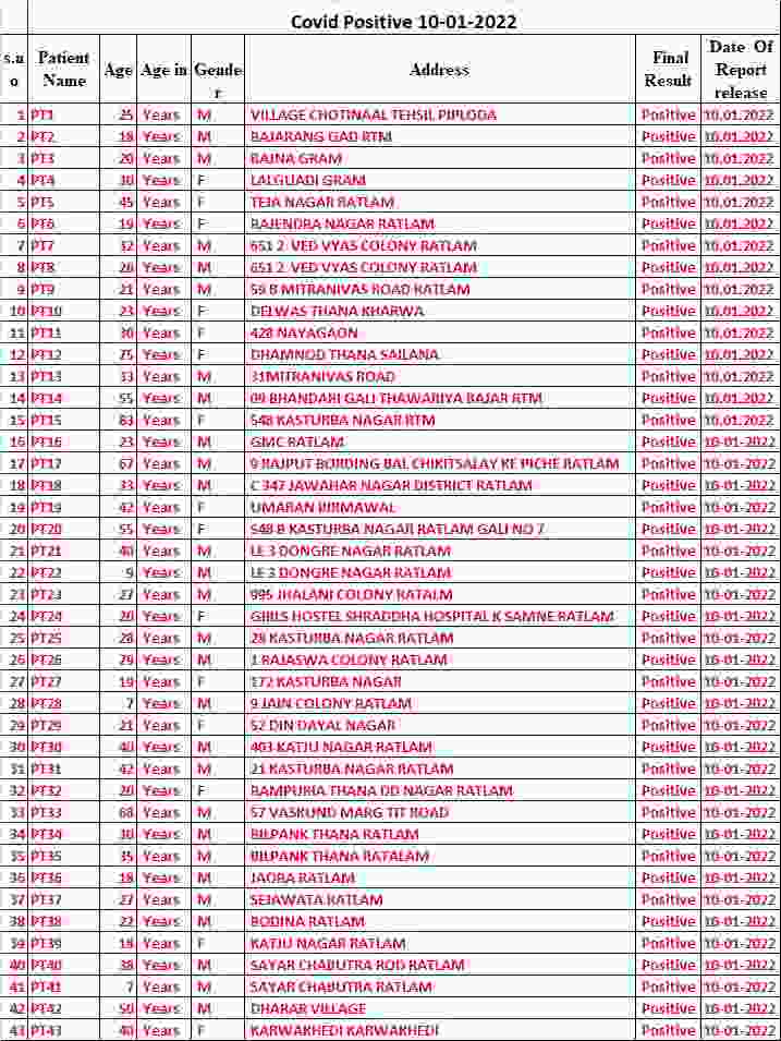 *B B C टाइम्स इन* रतलाम, 10 जनवरी। कोरोनावायरस से संक्रमित होने वालों की संख्या कम होने का नाम नहीं ले रही है। सोमवार को आई जांच रिपोर्ट में 43 महिला पुरुष पॉजिटिव आए हैं, जिनका उपचार चल रहा है। रविवार को कलेक्टर और एसपी द्वारा सड़कों पर मार्च करने के बावजूद भी लोगों ने सीख नहीं ली। सोमवार को बाजार में बिना मास्क के लोग घूमते नजर आए।