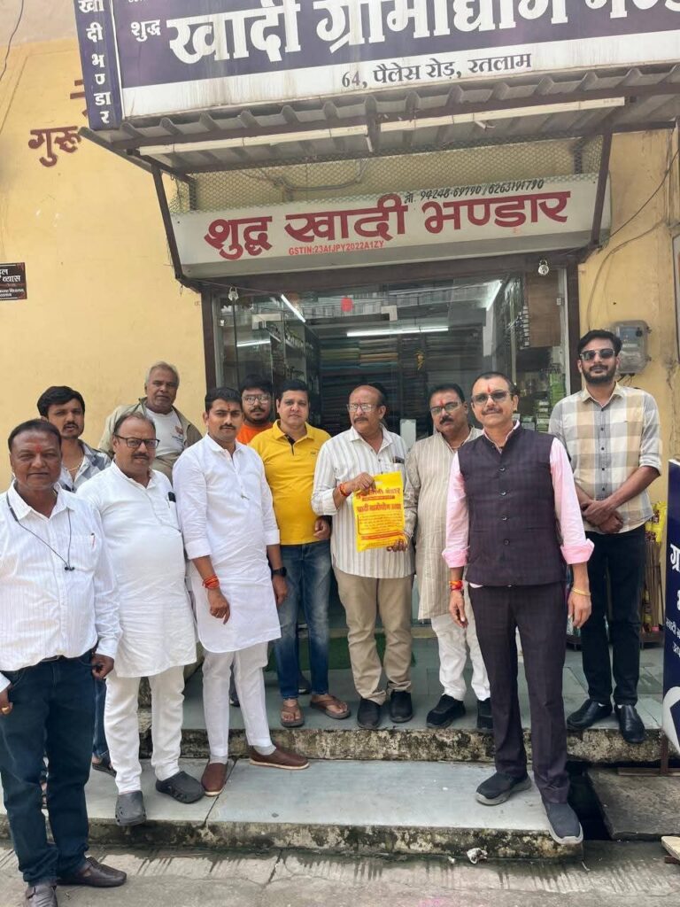 भाजपा जिला मीडिया प्रभारी अरूण त्रिपाठी ने बताया कि माल्यार्पण के पश्चात् भाजपा कार्यकर्ता खादी भण्डार पहुंचे और खादी खरीद कर स्वदेशी अपनाओ का नारा बुलंद किया। इस दौरान भाजपा जिला महामंत्री जयवंत कोठारी , उपाध्यक्ष प्रहलाद राठौड, विप्लव जैन जिला कोषाध्यक्ष पवन सोमानी, सहकोषाध्यक्ष राजेन्द्र पाटीदार होस्टल, मंडल अध्यक्ष आदित्य डागा, निलेश गांधी सहित पार्षद योगेश पापटवाल, मंडल पदाधिकारी विवेक शर्मा, चेतन टांक , गौरव त्रिपाठी, दिनेश राठौर आदि मौजूद रहे।